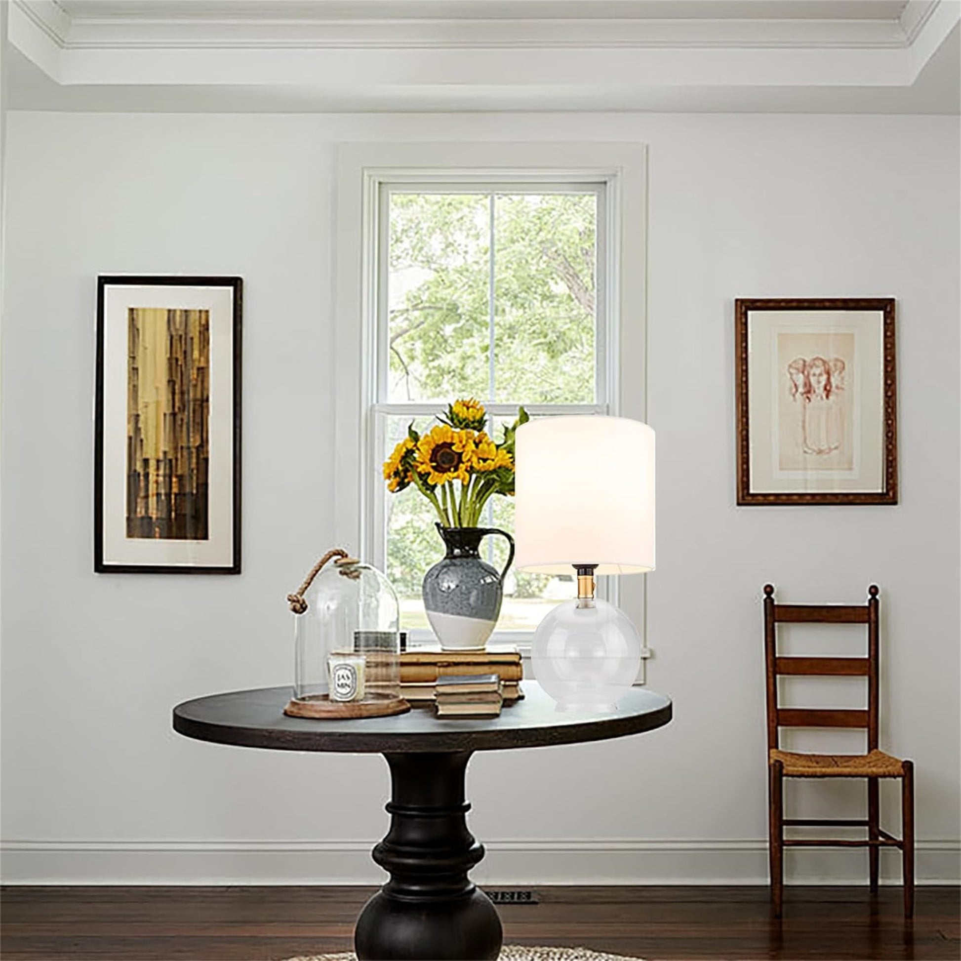 2. Minimalist Design: Our bedside glass table lamp enhances home aesthetics with its elegant and sleek appearance. Equipped with a beige linen open-top shade and a compact, transparent spherical glass base, its exquisite size and design make this lamp a perfect decoration for spaces like bedrooms and living rooms.